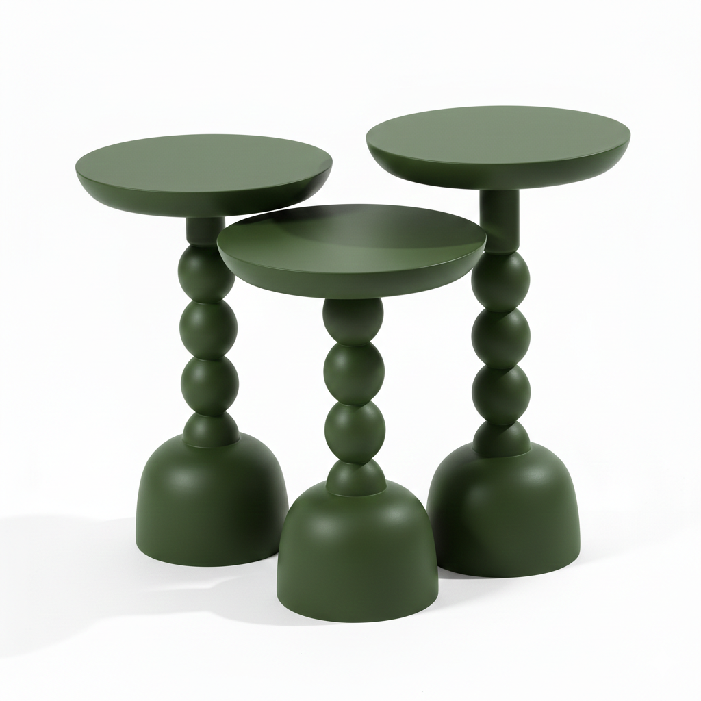 Doğadan ilham alan rengi ve özgün tasarım detaylarıyla öne çıkan Evim Hizmet Boncuk Mantar Kaktüs Yeşili Zigon Sehpa, yaşam alanlarınıza modern, huzurlu ve estetik bir atmosfer kazandırmak için özenle üretilmiştir. Boncuk formundaki zarif ayak yapısı ile mantar biçimli üst tabla birleşerek hem dekoratif hem de fonksiyonel bir kullanım sunar. Tek başına şık bir yan sehpa olarak kullanılabileceği gibi zigon seti düzeninde de dengeli ve dikkat çekici bir görünüm oluşturur.