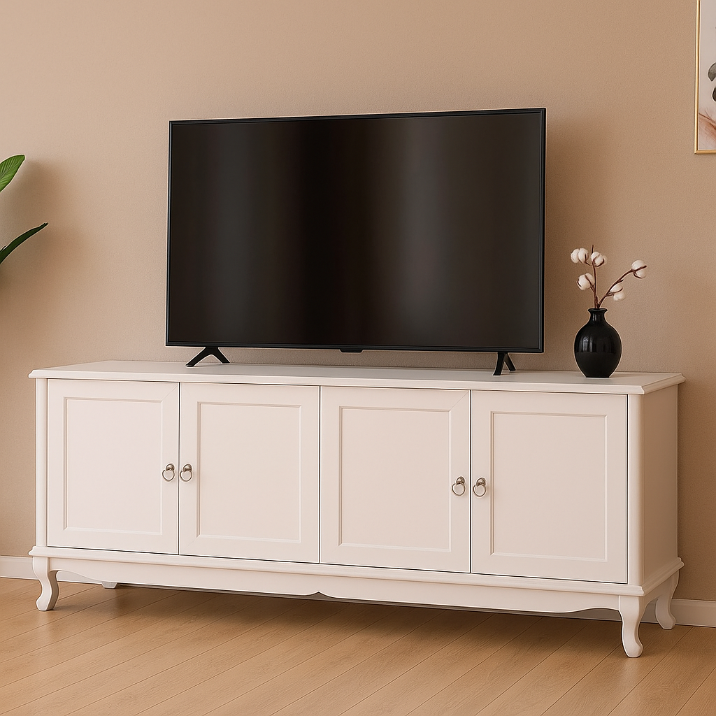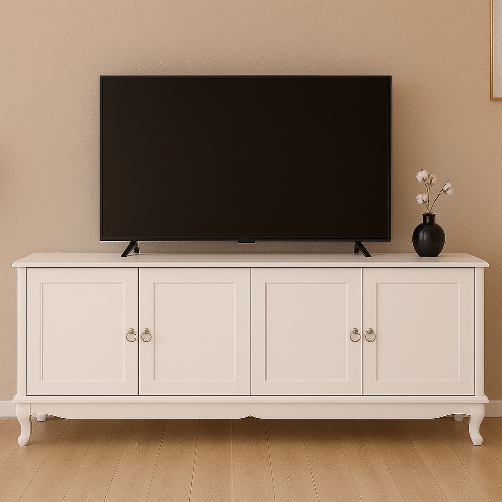 Evim Hizmet Lükens 4 Kapaklı TV Sehpası – Beyaz Renk, Şıklığın Zamansız Yorumu