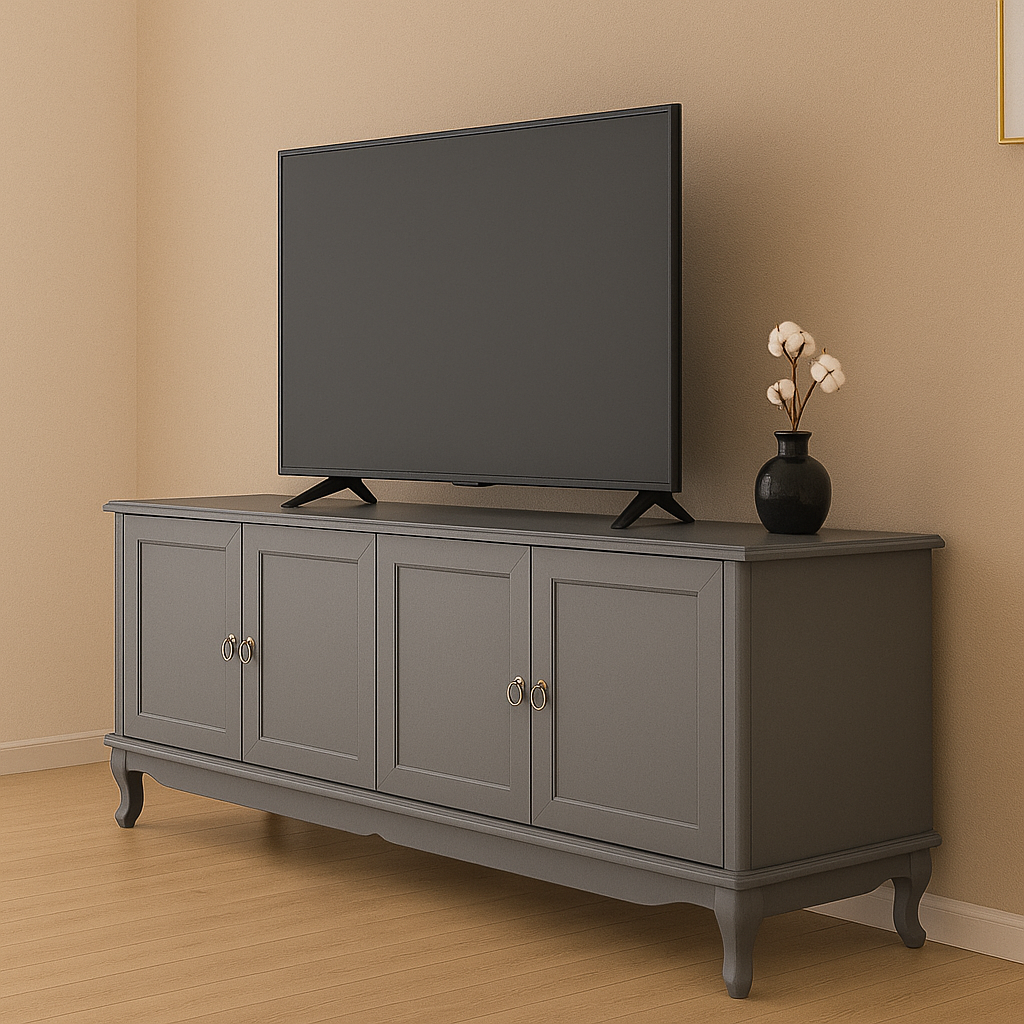Evim Hizmet Lükens 4 Kapaklı TV Sehpası – Gri Renk, Şıklığın Zamansız Yorumu