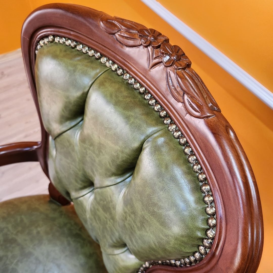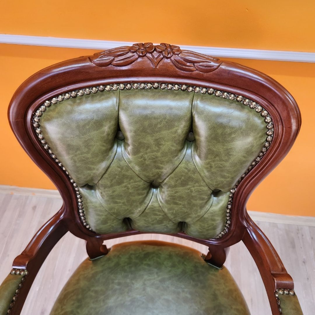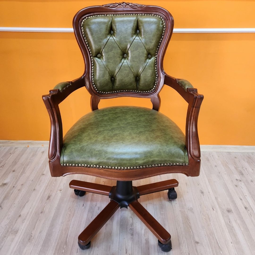 Evim Hizmet Masif Ceviz Oymalı Klasik Döner Koltuk – Estetik, Dayanıklı ve Tamamen El İşçiliği