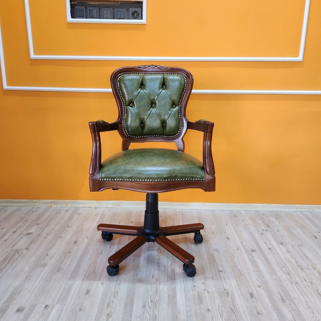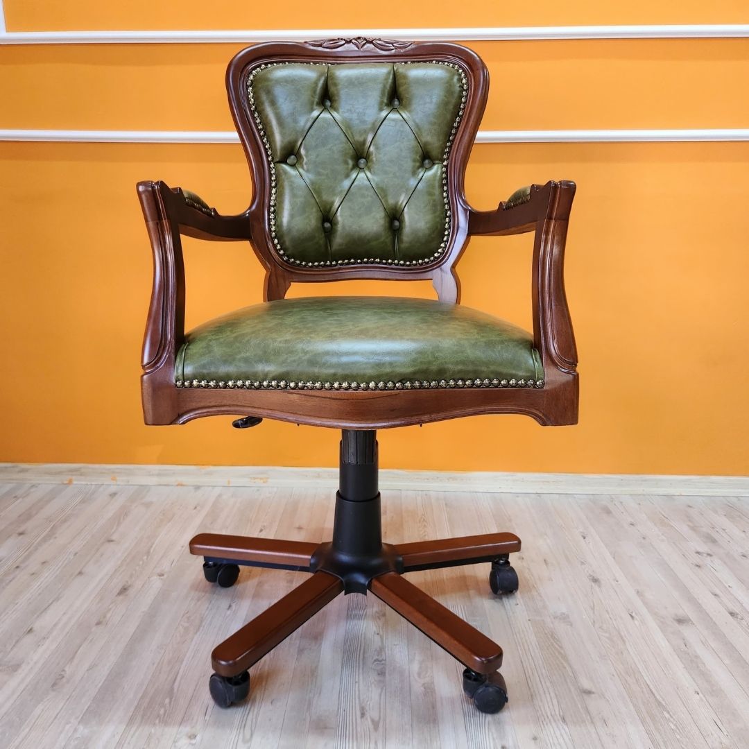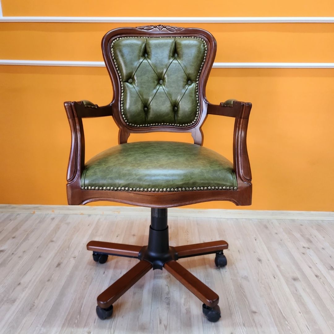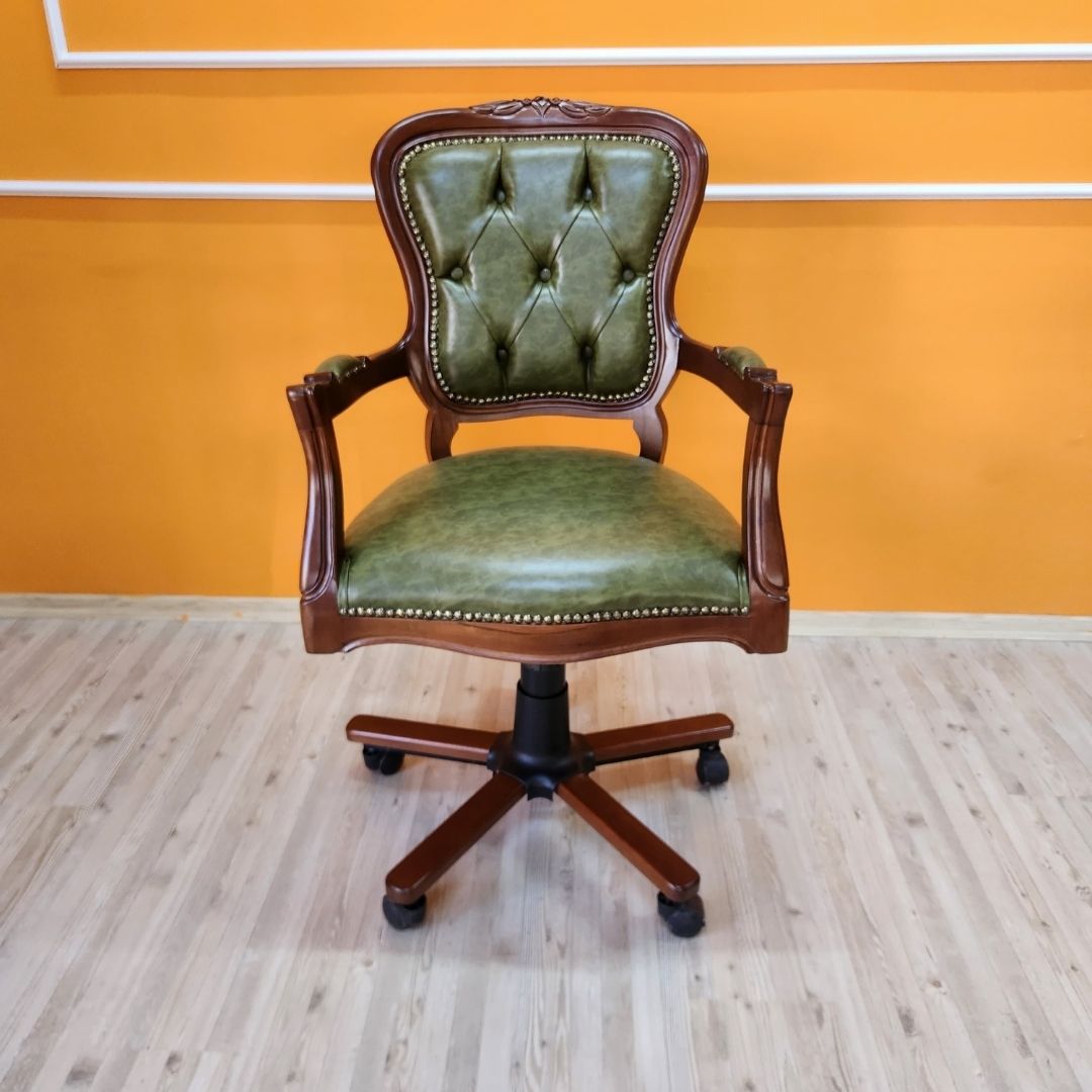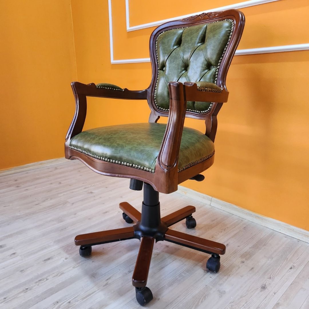 Evim Hizmet Masif Ceviz Oymalı Klasik Döner Koltuk