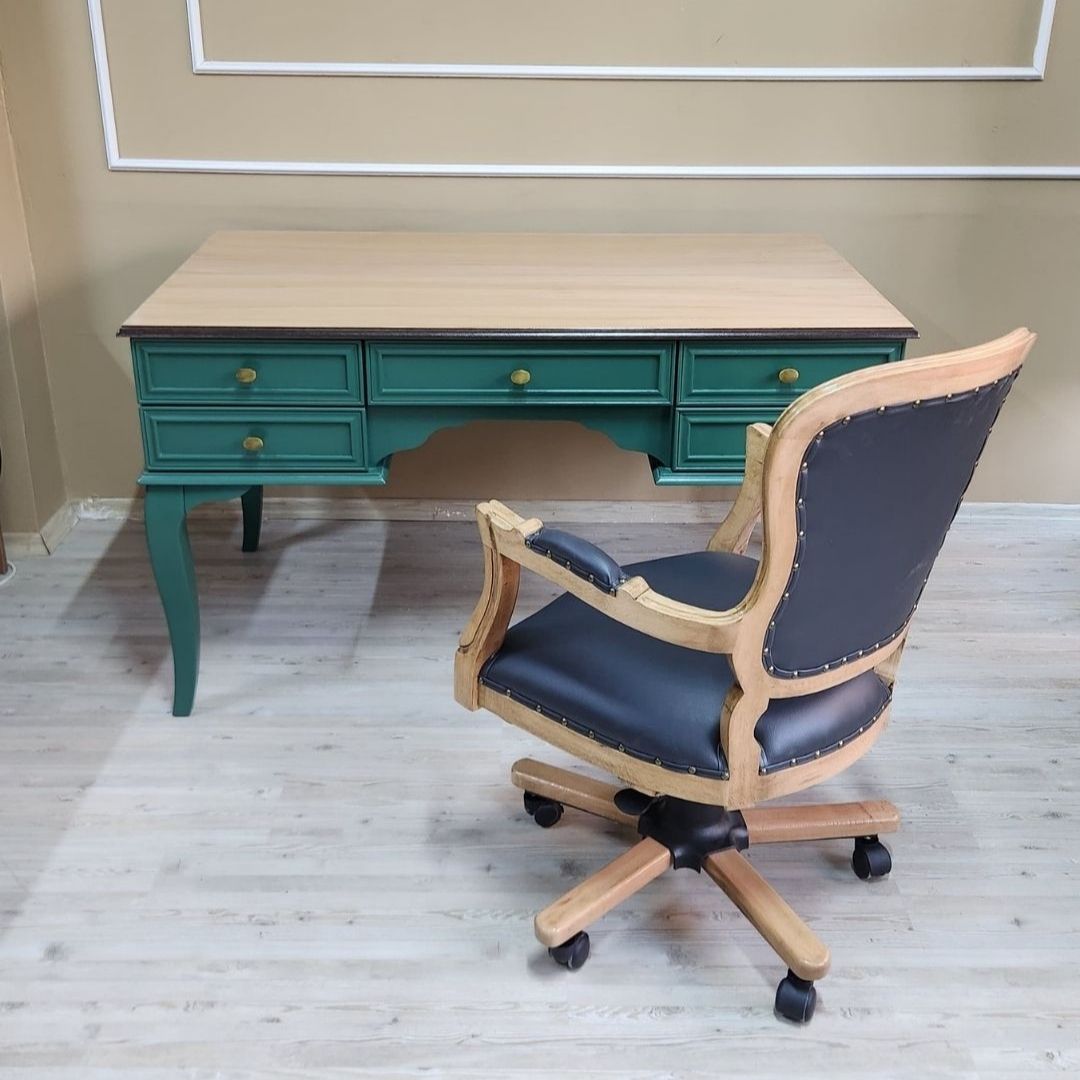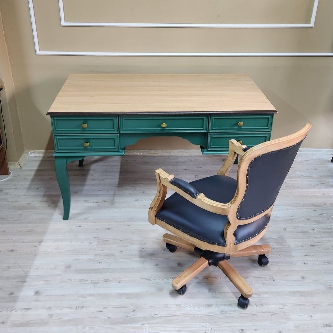 🪑 Evim Hizmet Natural Tablalı Kaktüs Yeşili Çizgi Çalışma Masası ve Döner Koltuk Takımı